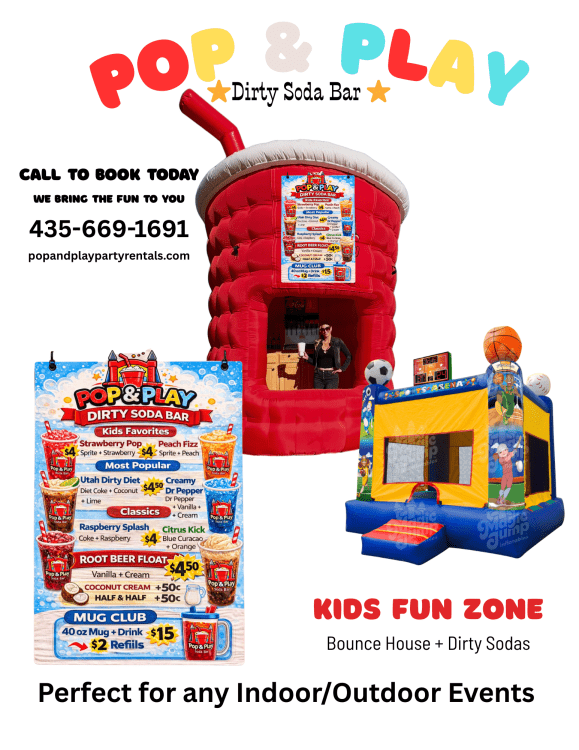 Create a safe fun zone with your favorite refreshments for home, schools, corporate or sports events. This package comes with the dirty soda bar and a bounce house slide combo(wet or dry). There is a base cost for the bounce house and bar of $495 that includes free drinks up to 25 people + $4 per extra person. We will also partner with you at large events and charge for all drinks to share revenue.